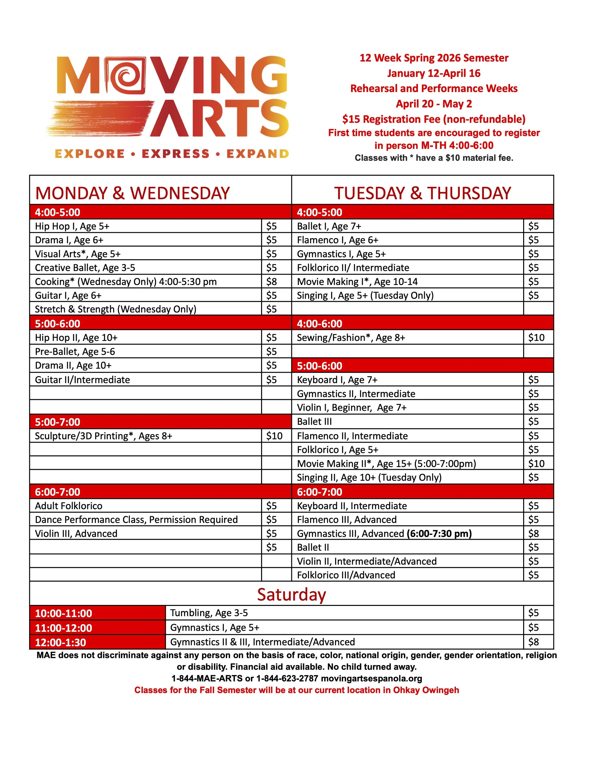 COST: $5/CLASS + $10 MATERIAL FEE