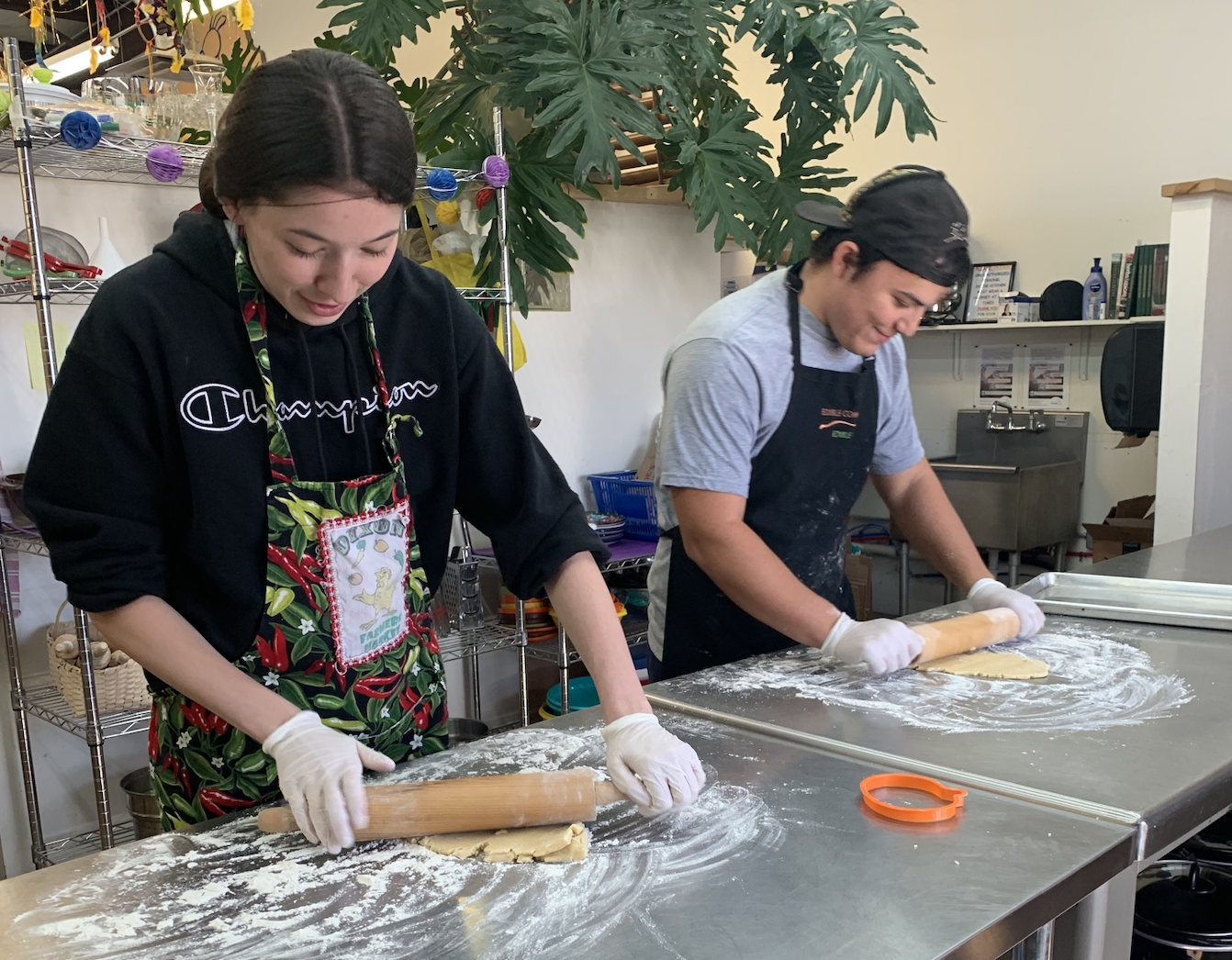These interns share their knowledge during Teaching Kitchens with other students at local schools. This work based learning program builds life skills and each participant receives a food handler certification.